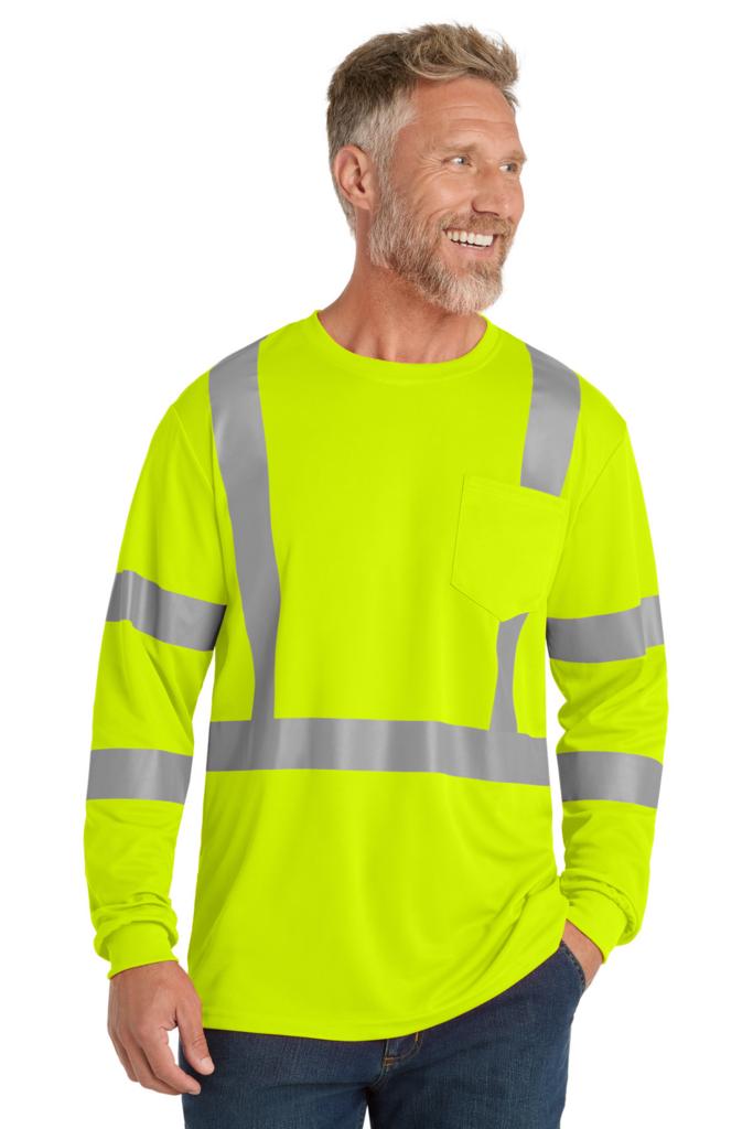 This breathable, moisture-wicking mesh tee delivers the highest ANSI visibility with additional reflective tape to meet ANSI 107 Class 3 standards.