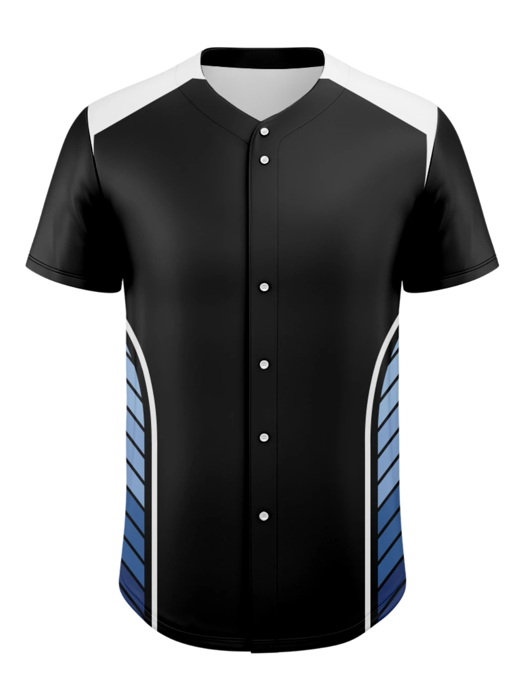 This version of our full-button sublimated jersey is built to showcase your team’s identity across the entire chest. The second and third button have an intentional larger gap, allowing your full-front logo to remain uninterrupted and perfectly visible.