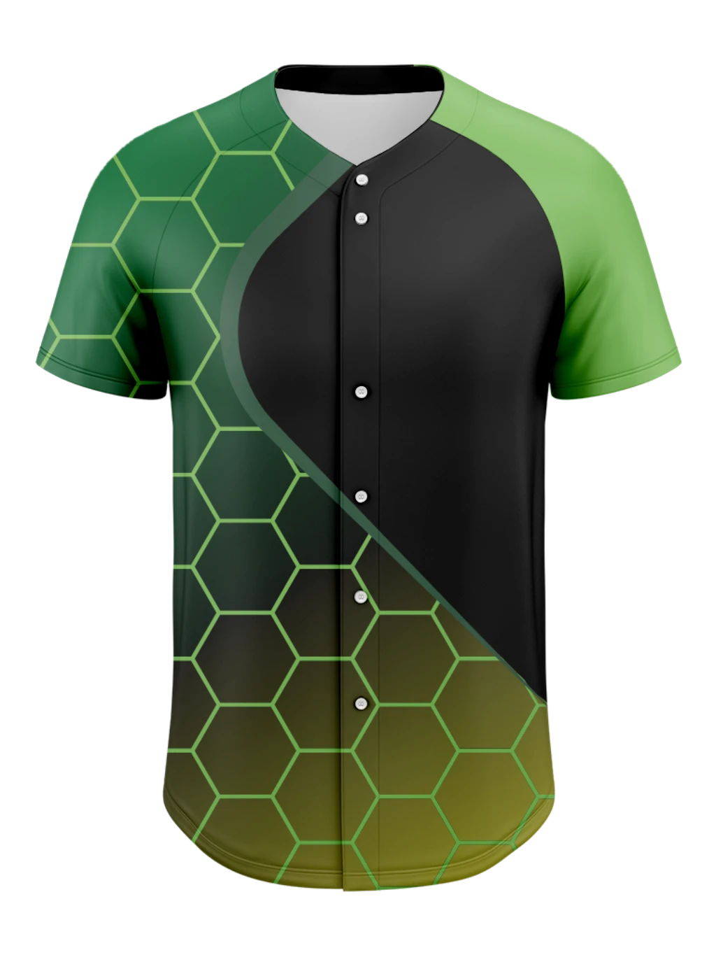 This version of our full-button sublimated jersey is built to showcase your team’s identity across the entire chest. The second and third button have an intentional larger gap, allowing your full-front logo to remain uninterrupted and perfectly visible.
