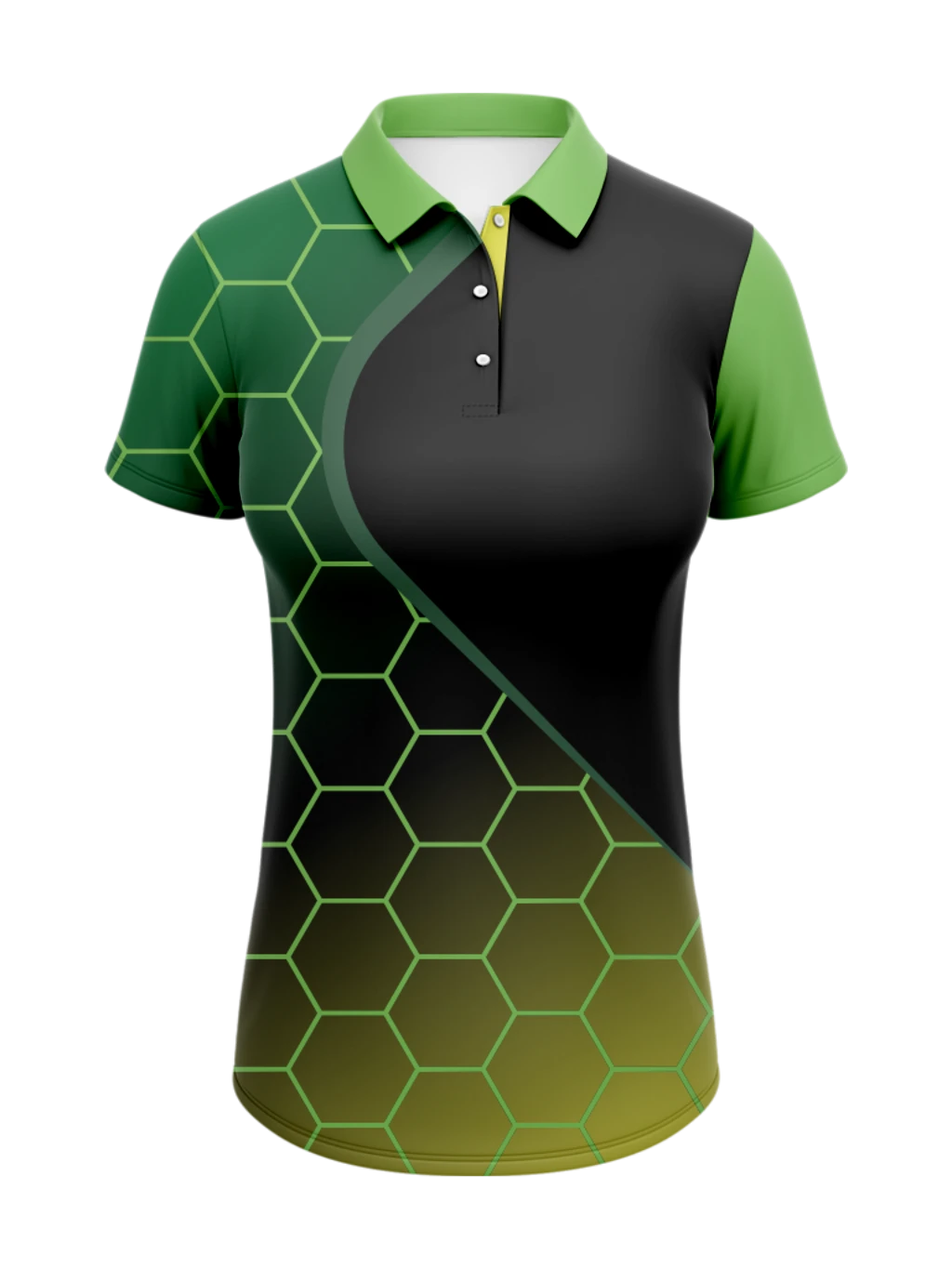 Custom women’s polo jersey built with premium polyester and full cut & sew sublimation. Each panel is printed before assembly for vibrant, seam-to-seam graphics that never crack or peel. Tailored women’s cut with a button placket polo collar for a polished, athletic look — perfect for teams, clubs, or brand programs.